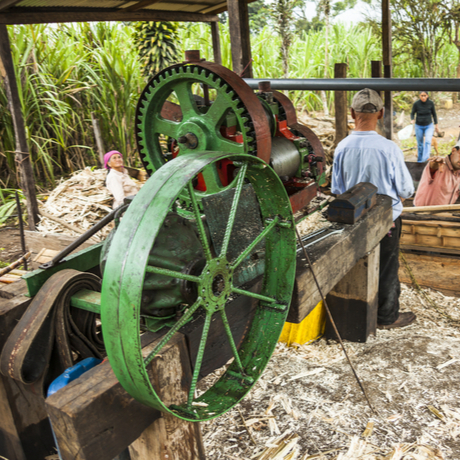 最初にトラピッチェエメラルドが発見されたコロンビアで、この模様がサトウキビを擦る機械の歯車に似ていることから、スペイン語の「トラピッチェ(歯車)」に由来して名付けられたと伝わります。